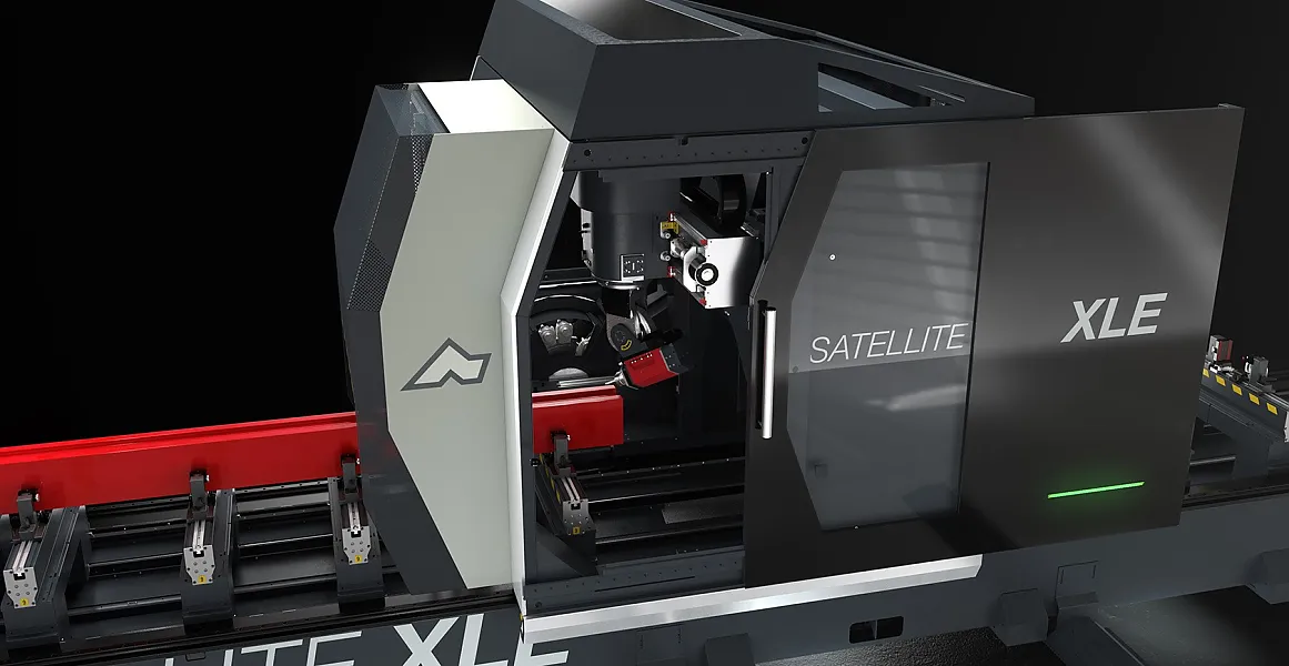 In der Kabine ist ein mitfahrendes Werkzeugmagazin mit 18 Plätzen untergebracht. Ein 450 mm Sägeblatt ist separat in einem speziellen Magazin untergebracht. Die SATELLITE XLE verfügt über neue individuell motorisierte Spanneinheiten. Diese positionieren sich im Pendelbetrieb unabhängig und währenddem die Spindel im gegenüberliegenden Arbeitsbereich im Eingriff ist (hauptzeitneutral). Die kompakten und robusten Spannstöcke lassen sich schnell und ohne Werkzeug verstellen.