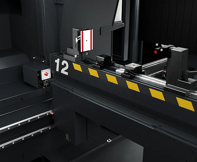 Das innovative Arbeitssystem verringert die Stillstandzeiten der Maschine in den Lade- und Abladephasen der Werkstücke auf ein Mindestmass. Die Maschine verwaltet die Aufteilung des Arbeitsbereichs in zwei unabhängige Bereiche unter vollen Sicherheitsbedingungen, wobei das Laden und Abladen sowie das Einstellen in einem Bereich erfolgt, während die Bearbeitung der Profile im anderen Bereich stattfindet. Dies ist auch bei unterschiedlichen Programmen zwischen den beiden Arbeitsbereichen möglich. Die dynamischen Modelle verfügen darüber hinaus über ein vom Schlitten der X-Achse unabhängiges Positioniersystem der Spanneinrichtungen. Dank dieser Lösung kann auch die Positionierung der Spanneinrichtungen hauptzeitneutral gesteuert werden, wodurch für das Einrichten, Einstellen, Beladen und Entladen kein Zeitaufwand mehr erforderlich ist.