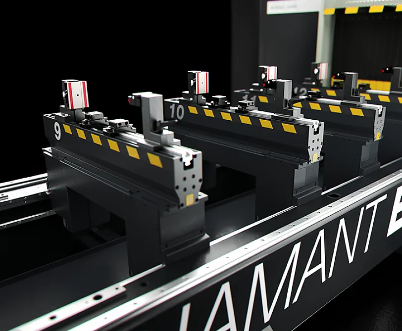 Die Software der Maschine ist, abhängig von der Stücklänge und den auszuführenden Bearbeitungen in der Lage das Positionierungsmass jeder Spanneinrichtungsgruppe zu bestimmen. Der am Portal vorhandene automatische Positionierer der Spanneinrichtungen positioniert jede Spanneinrichtungsgruppe hochgenau, was keine manuellen Eingriffe mehr erforderlich macht und Kollisionsrisiken während der Bearbeitung vermeidet. Dieses System arbeitet unter vollkommen sicheren Bedingungen und sorgt dafür, dass die Maschine auch von weniger erfahrenen Bediener einfach bedient werden kann.