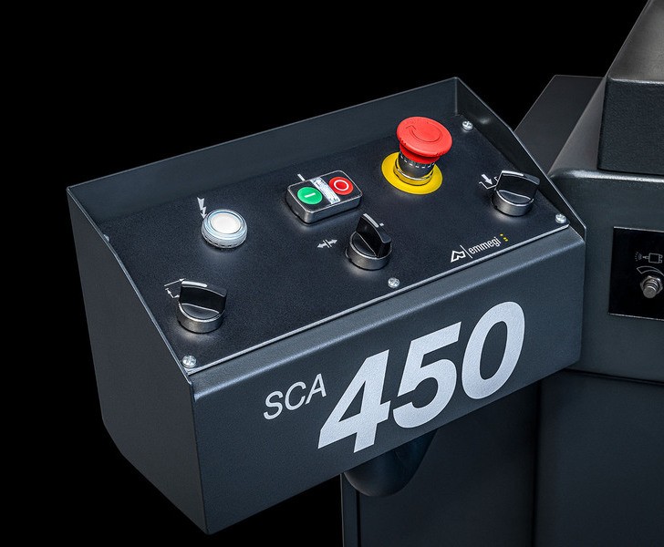 Einkopf-Gehrungssäge SCA Mini P mit von unten kommendem Sägeblatt, Zufuhrseite links für …