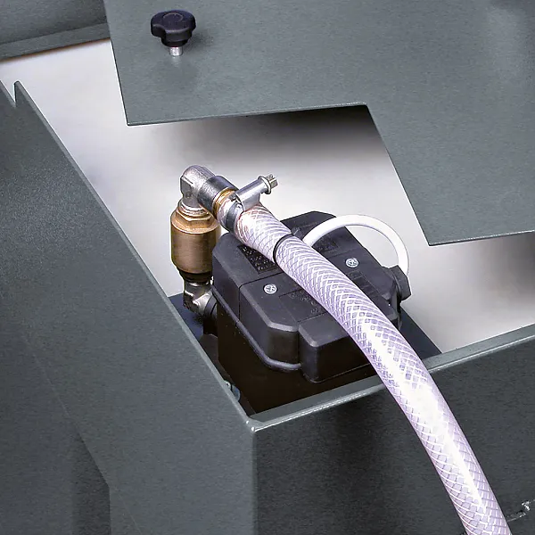 Das Öffnen und Schliessen des Schraubstocks erfolgt über ein handbetätigtes Schaltventil (OPTIONAL Fussschalter für den Schraubstock).