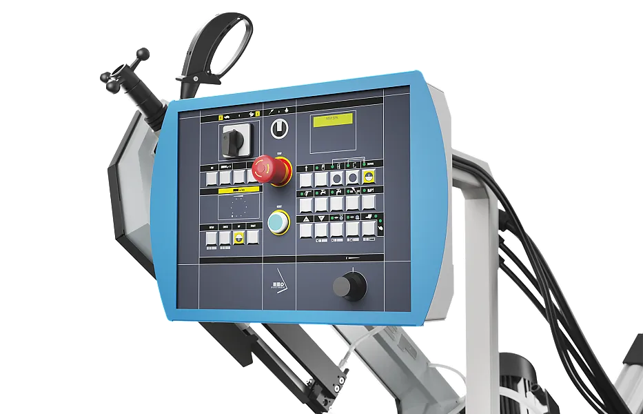 Schraubstock und Sägekopfsenkung sind hydraulisch gesteuert, dies gewährleistet, abhängig von der vom Bediener vorgenommenen Einstellung, einen konstanten Druck während dem Schnitt.