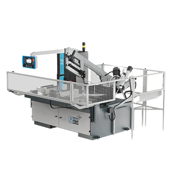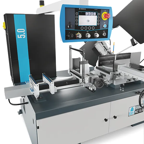 Elektrohydraulischer Bandsägevollautomat SHARK 332 NC 5.0 mit zusätzlich halbautomatischem, halbautomatisch-dynamischem und manuellem Betrieb.