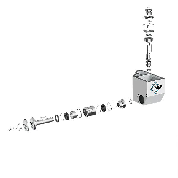2,6 KW-Motor (Schutzart IP55) mit Vektorumrichter und mechanischem Getriebe zur Einstellung der Blattdrehzahl von 12 bis 120 U/min.