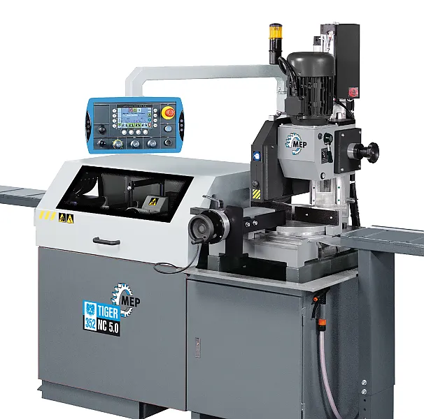 Elektropneumatischer, Vertikal-Kreissägeautomat TIGER 352 NC 5.0, um Serienschnitte von 60 links bis 45° rechts in z.B. Stahl auszuführen (für den Einsatz von HSS-Sägeblättern).