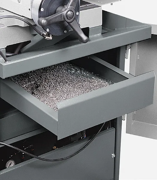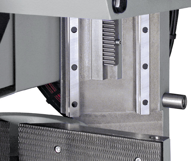 Der Vorschub der Sägekopfhalterung über die beiden Linearführungen mit vorgespannten Kugelumlauflagern gewährleistet die Verringerung der mechanischen Schwingungen beim Schneiden.