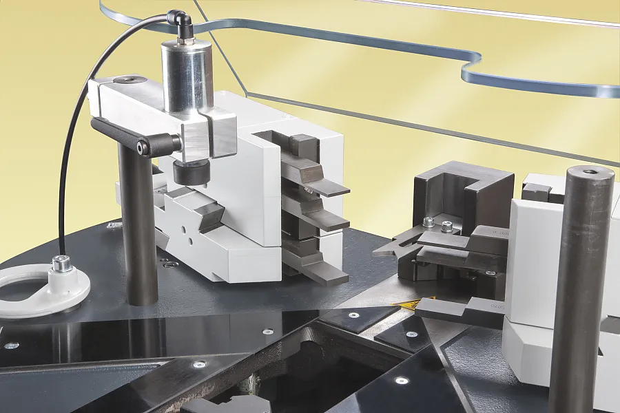 5000 Eckpresse für hohe Aluminiumprofile im Fenster- und Fassadenbau.